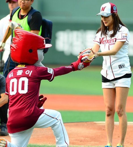 넥센vs엘지 전에서 시구한 적도녀 임정은과 턱돌이가 커플룩이 화제 집중