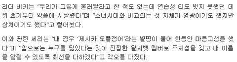 비록 전멤버이지만 해명할게요. 이건 모르시는 분들이 좀 있을텐데 내용을 설명하자면 백점만점이라는 예능에서 비키가 씨름을 했는데 상대인 miss A 민과 베베미뇽 해금을 넘어뜨리고 일으켜주지도 않은 채 정색을 빨며 갔다는 건데