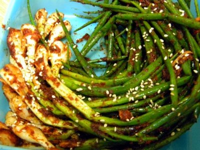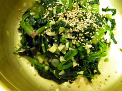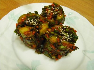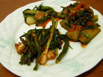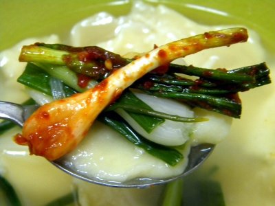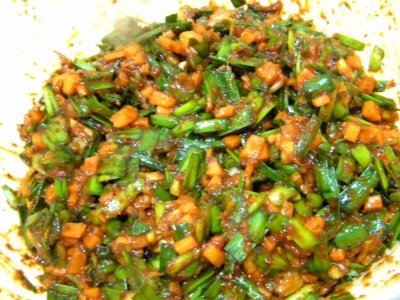쪽파를 데쳐서 고추장양념에 버무리면 끝