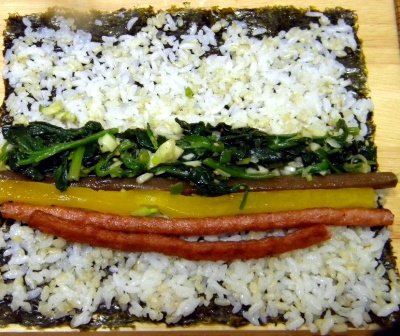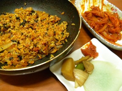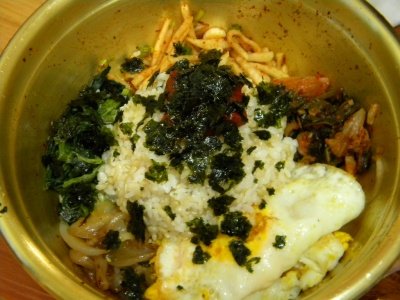 무생채+양파볶음+김치볶음+시금치+달걀후라이+김가루