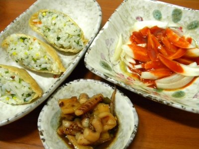깻잎유부초밥이랑 양파무침이랑 ㅋㄷ