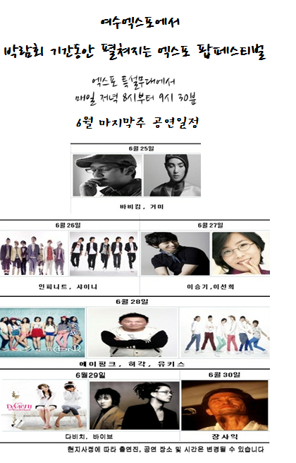 6월 마지막 주 여수엑스포 팝페스티벌 공연 소식