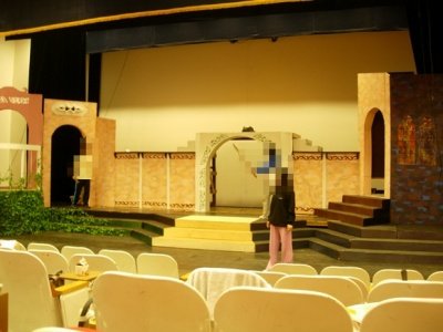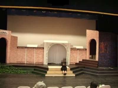 대학교 극장 무대 앞에 나무로 된 단을 2개 덧대서 너비를 넓힘. 무도회장이랑 줄리엣의 발코니도 만듦.