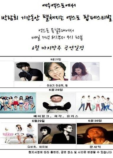 [여수엑스포] 6월 마지막 주 엑스포 팝페스티벌 공연 소식