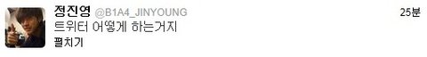 비원에이포 팬분들 어서 진영한테 팔로우해주세요 ~