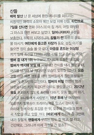 산들이 이번 뮤지컬을 선택한 데는 B1A4 멤버들이 가장 큰 몫을 차지했다. 데뷔 전 뮤지컬을 본 멤버들의 강력한 추천이 있었기 때문이다.