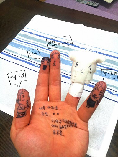 그래도 오른손이 다친게 아니라 다행이에요. 그림은 그릴 수 있으니까요 헤헤.
