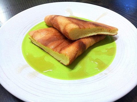 여튼 완성된 반죽은 펜에 촉촉할 정도로 유를 깔아주고 약불에 서서히 구우면 되어요.
