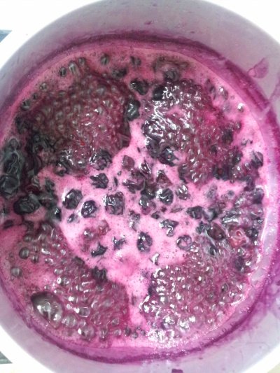 냄비에 블루베리를 넣고 살짝 잠길 정도로 설탕 물을 부어줍니다. 이제 팔팔 끓이기만 하면 되어요.