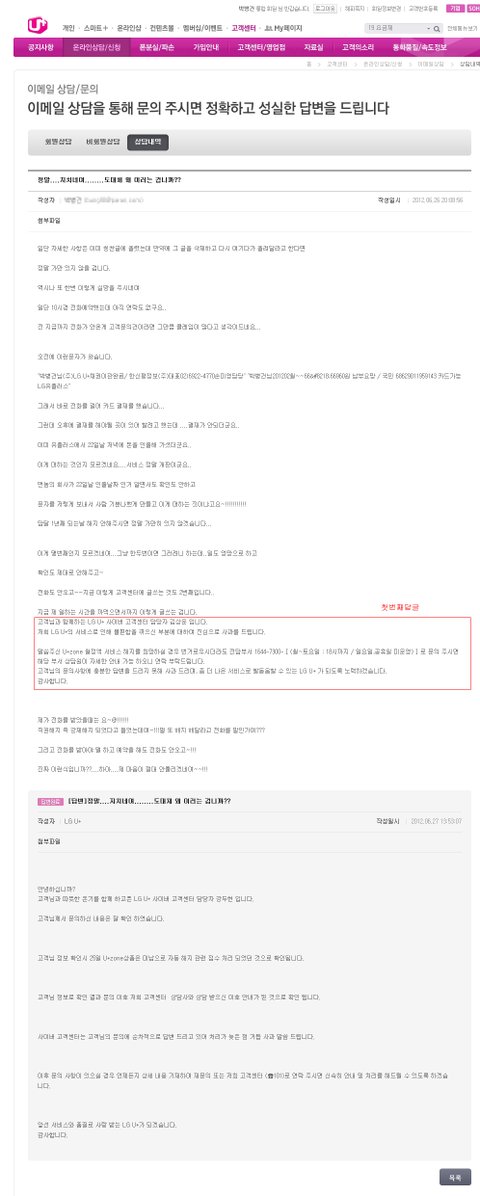 3. U플러스존에 대한 상담을 원했는데.. 101에서 전화와서 1544-0010에 전화하라고 했고..1544-0010에서는 101에 전화하라고 했습니다. 그리고 나서 101했더니 연락받으실 전화번호 남기라고~....그리고 안왔습니다. 무려 이것 떄문에 30-40분이라는 시간을 버렸습니다....