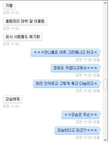 어제 올림머리하고 퇴근하니깐 그때는 별말안하더니 갑자기 이러심ㅋㅋㅋ
