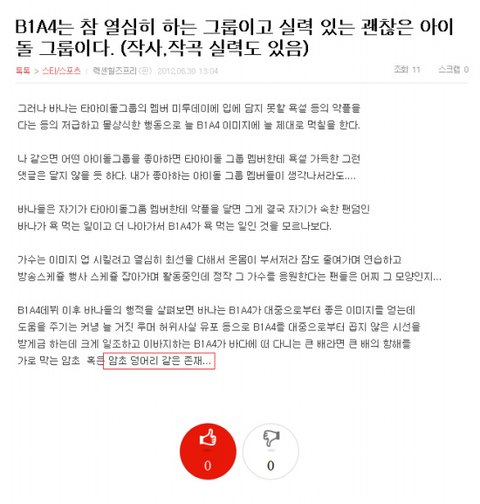 저 오늘 네이트판 보다가 B1A4에 관련된 글을 보았어요