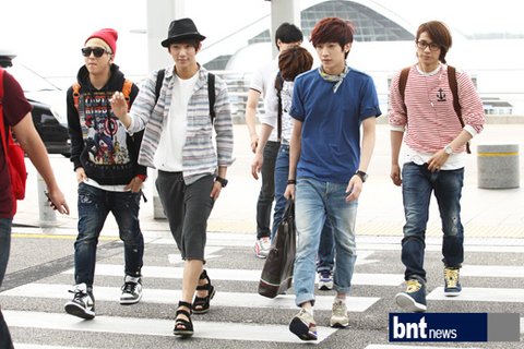 6월14일 오전 인천국제공항에서 아이돌그룹 b1a4(진영,바로,산들,신우,공찬)가 'Boyz Nite Out' Kpop Festival in Singapore(싱가포르)에 가기 위해 !