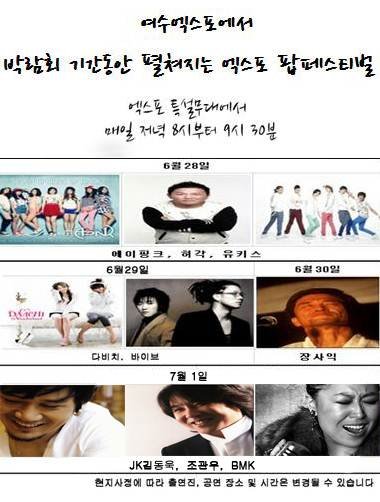 [여수엑스포] 6월 마지막 주 엑스포 팝페스티벌 공연 소식
