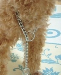 "초크체인"이라는 훈련용 목줄을 사용하고있음
