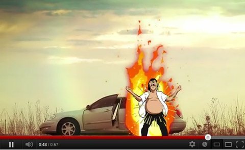 배 볼록 나온 중년의 남자가 길 한복판에서 갑자기 폭발하며 몸에서 무한 에너지가 발생했습니다.