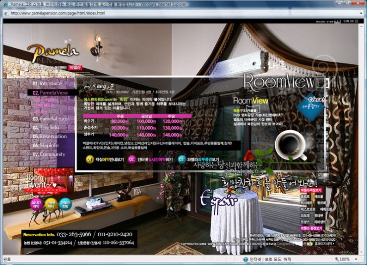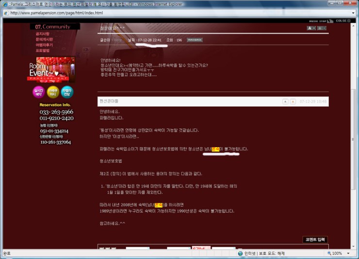 하 구라가 묵었던 팬션 홈페이지 (파멜라)