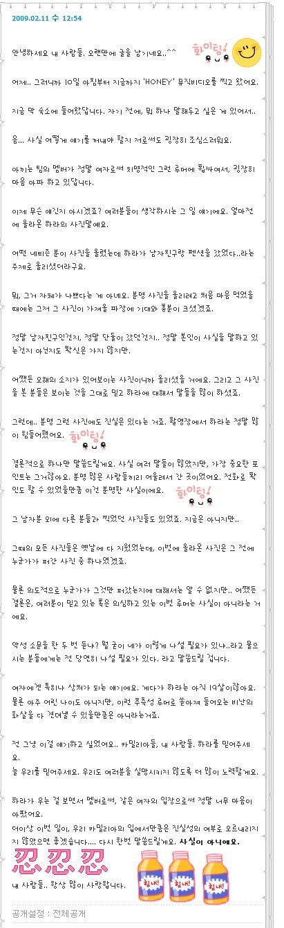 ↓이건 박규리가 자기싸이에 올린 해명글