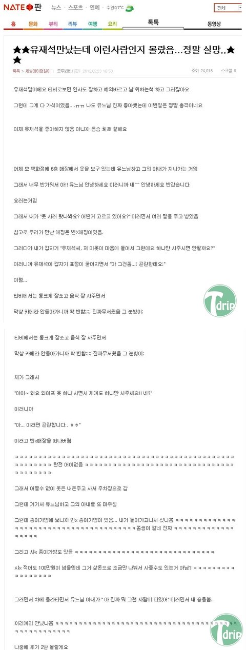진짜 하다하다 유느님까지 건드네 써글년들 ㅋㅋㅋㅋㅋ