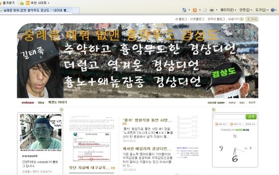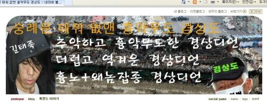 블로그 제목이 '숭례문 태워먹인 흉악무도 경상도'입니다.