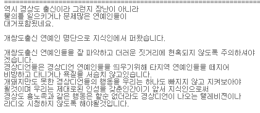 연예인 뿐만 아니라 경상도에 사시는 분들이 글을 보면 어떠하겠습니까?