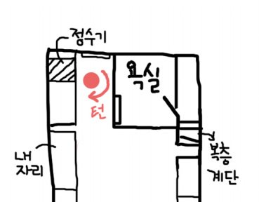 느긋하게 정수기에 물을 뜨고 턴을 했는데...
