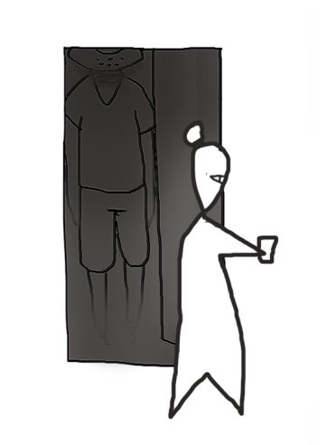 왠 남자가 반쯤 열린문뒤에 내쪽을 보며 서있었음.