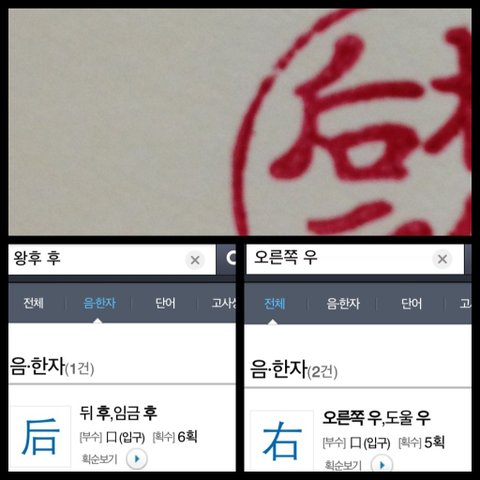 이 도장에 보이는 "왕후 후"자가 왕후 후자가 아니라 "오른쪽 우" 자에 가깝다며 주민센터에서 인감증명서 발급을 거절당했습니다. 20년을 넘게 사용한 도장의 글자가 잘못되었다니요... 정말 기가막힙니다. 어느정도 수긍을 할 수 있을만한 얘기를 해야되지 않냐며 "후"자가 맞지않냐고 얘기했으나 오히려 어떻게 이게 같은 글자냐며 마치 유치원생 취급을 당했습니다.