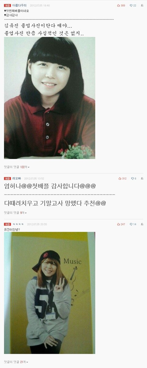 톡둘러보다 보니까 김유진양 졸업사진이라고...