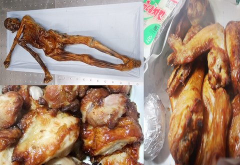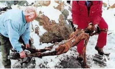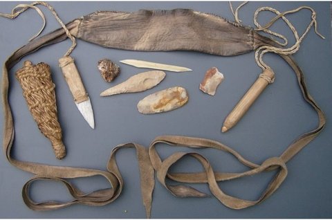 하지만 냉동 미이라 곁에서 현대인의 것이라고는 볼수없는 유물들이 함께 발견되면서