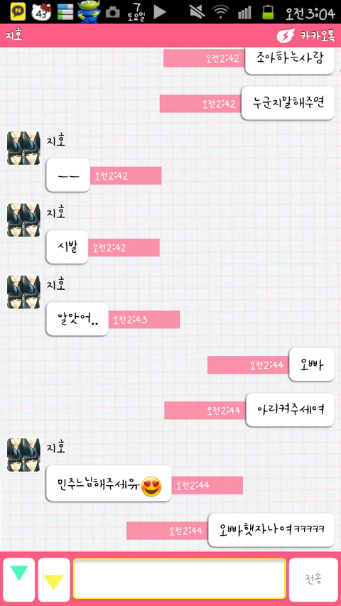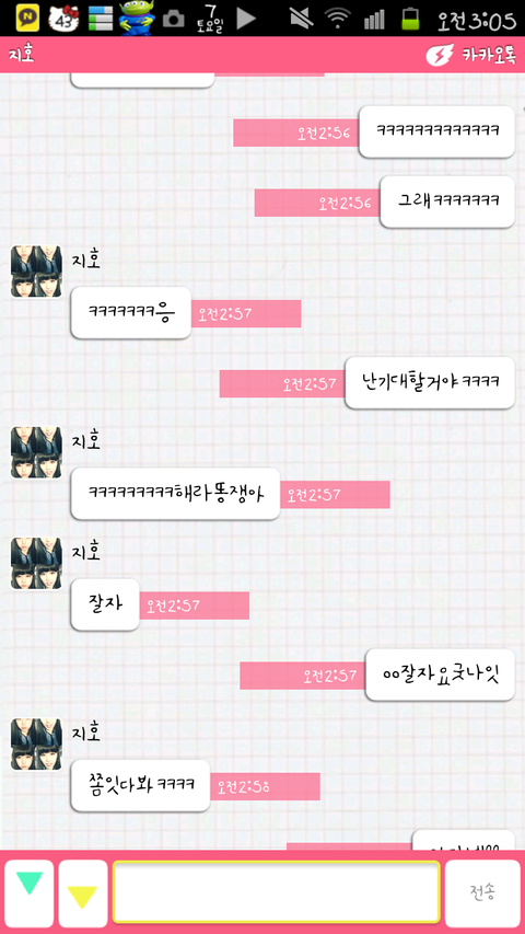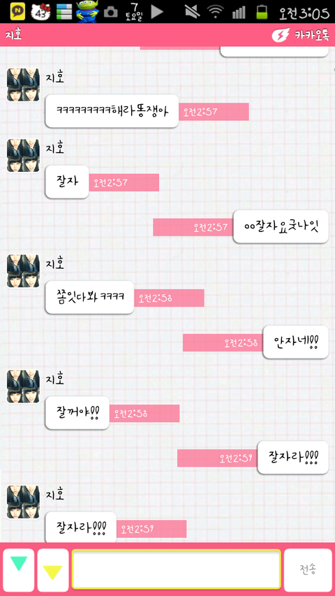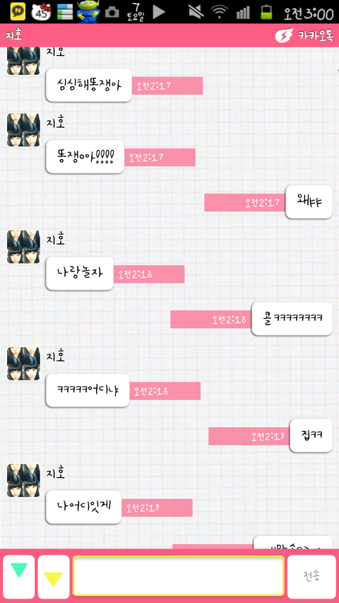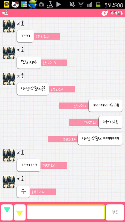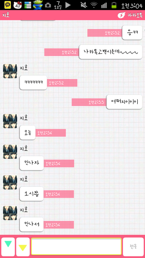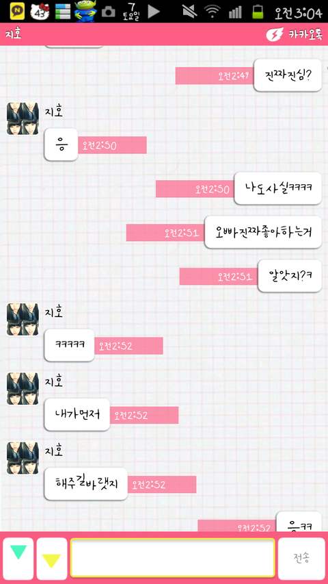 근데 오늘 새벽에 제가 미쳣나 새벽세시감성에젖엇나 뜬금없이 진게하자고 그랫엇어요 ㅋㅋ그카톡보내고후회햇어요ㅋ진짜뜬금음슴섯어섴ㅋㅋㅋ