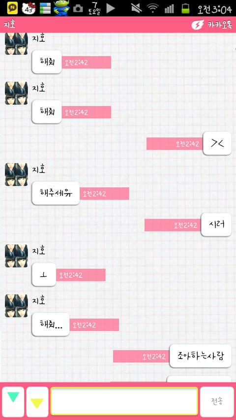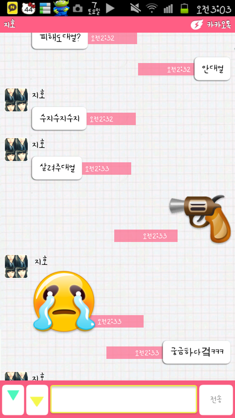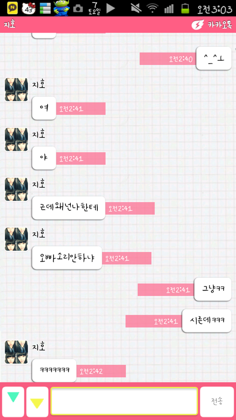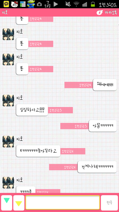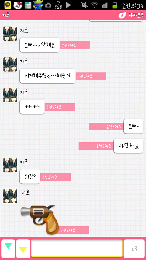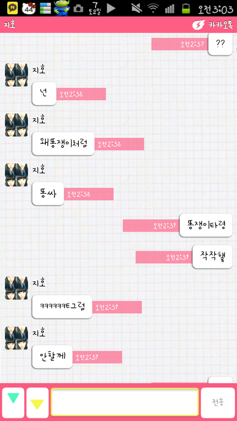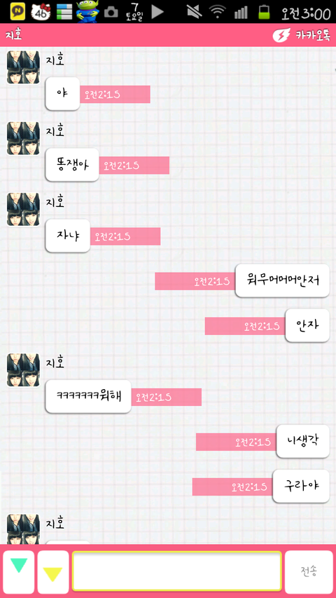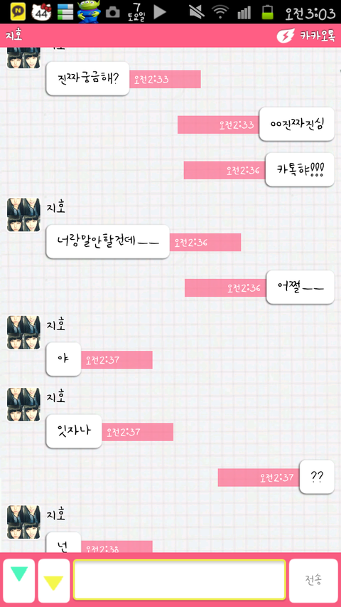 근데 오늘 새벽에 제가 미쳣나 새벽세시감성에젖엇나 뜬금없이 진게하자고 그랫엇어요 ㅋㅋ그카톡보내고후회햇어요ㅋ진짜뜬금음슴섯어섴ㅋㅋㅋ