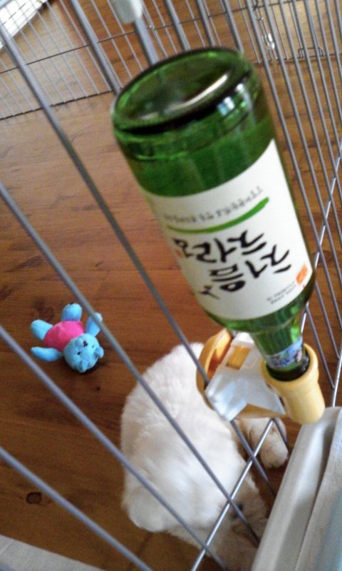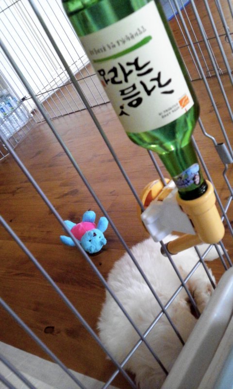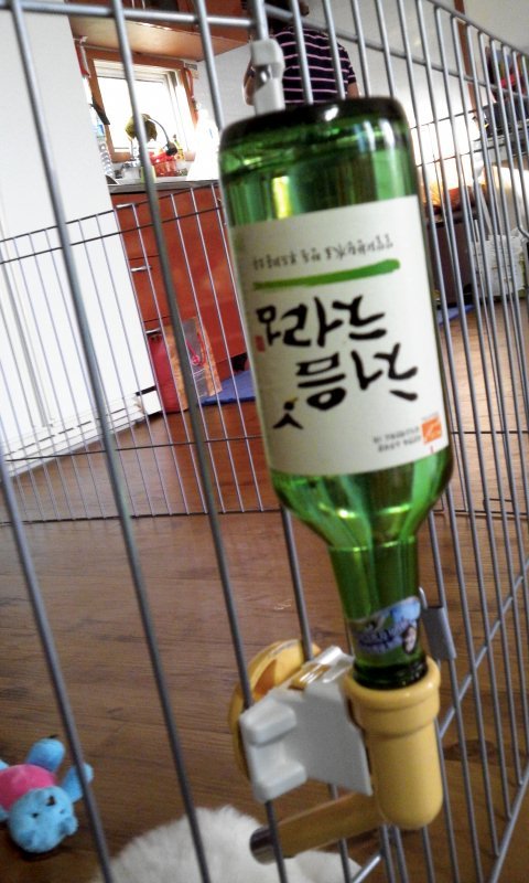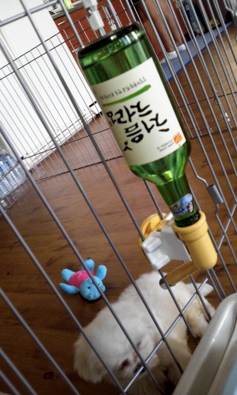 몇일전 입양한... 두달된 아가 물통에 이렇게 이슬이가~~