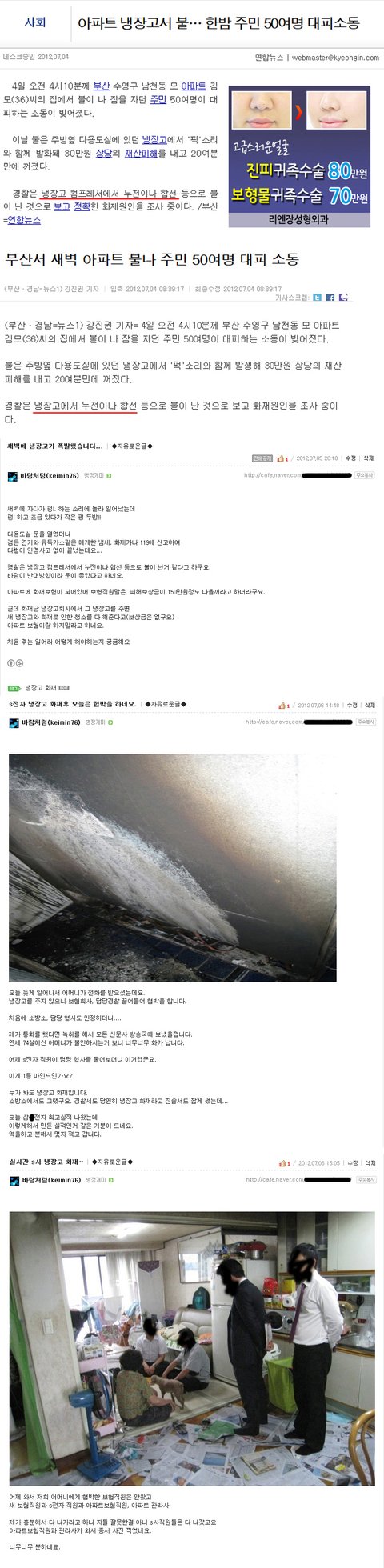 처음엔 냉장고 컴프레서 폭발로 화재라고 하더니