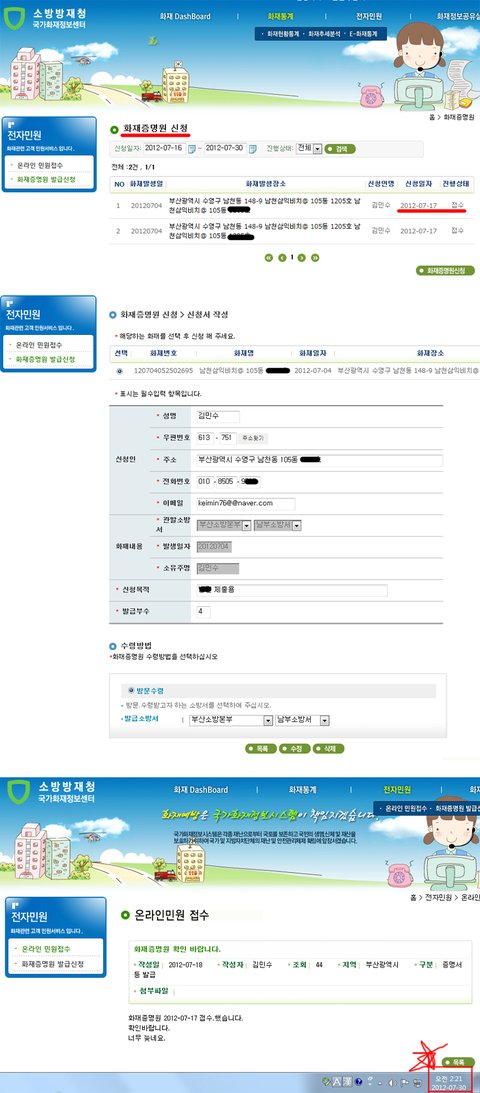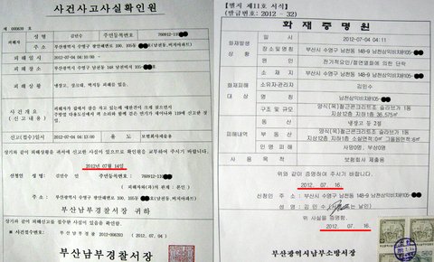 처음 화재증명원을 땠을때 보험회사 제출용으로 첨으 때서