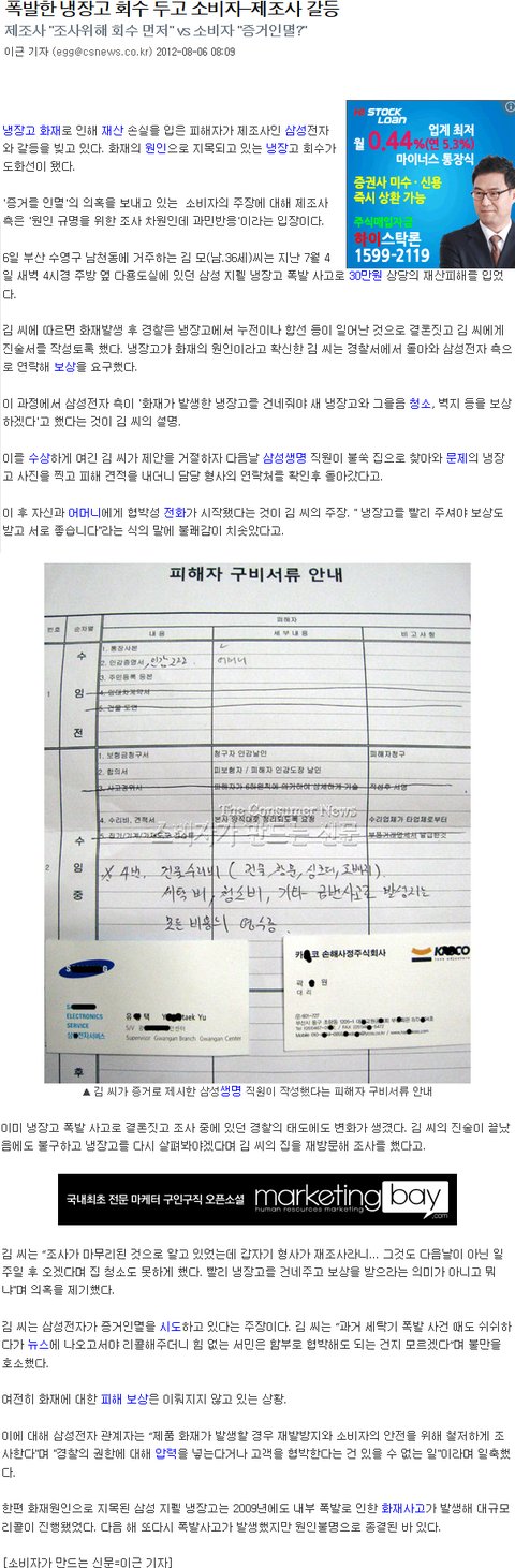 2012년 10월 12일 소비자고발 냉장고화재 로 방송되었씁니다.