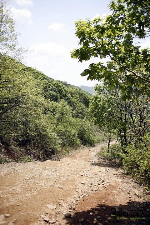 따가운 태양을 피해 계곡길로 내려섰습니다. 샛골에서 소맷골로 이어지는 계곡길은 조용하고 호젓했습니다. 졸졸졸 청명한 계류 소리가 울려 퍼지는 산길은 고도를 조금씩 낮추며 30분가량 계속됐습니다. 악(岳)산이지만 시작부터 마지막까지 순한 산길을 내어주는 감악산입니다. 산행이라기보다는 가족이나 연인이 담소를 나누며 오롯하게 사진도 찍고 역사와 자연을 만끽하며 오를 수 있는 코스입니다.