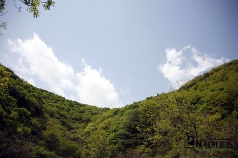 바위 사이로 검은빛과 푸른빛이 동시에 흘러나온다는 신비의 산.