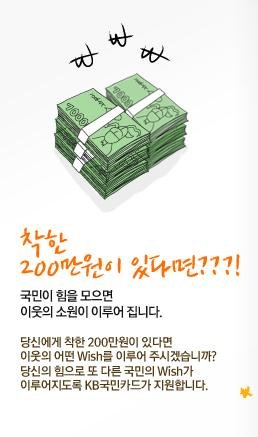 유투브(http://youtu.be/VqwLRWUk18A)에서는 위시리더 영상도 찾아볼 수 있는데요. 직접 영상을 보고 나니까 티비에서도 종종 봤던 영상이란 걸 알 수 있었죠.ㅎㅎ 위시리더를 통해 이웃을 돕는 방법은 아주 간단하답니다. ^^ 내 이웃의 사연을 위시리더 홈페이지에 응모해서 선정되면 최대 200만원까지 지원받을 수 있는데요 KB 국민카드에서 지원한 이 지원금으로 이웃을 마음껏 도울 수 있답니다!