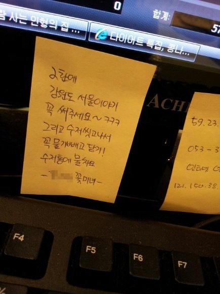 그때 그녀의 쪽지에 강원도와 서울이 각각 쓰여있었다고 함