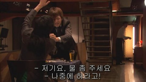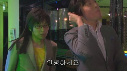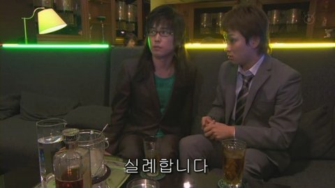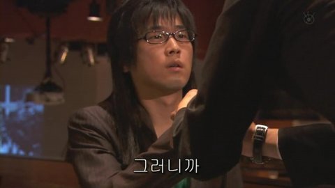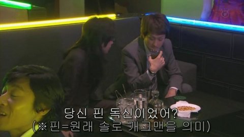 그때 남자 2명이 옵니다. 그리고 그중 안경쓴분이 주인공 옆에 앉아서 명함을 주네요.