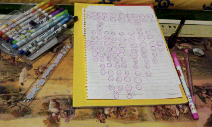 아래사진과같이 모양이 송송뚫린 이면지를 다른이면지에다가 대고서 샤샤샥~