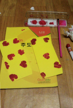 이와같은방법으로저는 노란색 편지봉투에다가 빨간색 물감으로