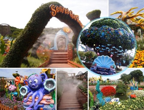 해양 테마 토피어리로 꾸며진 정원 곳곳에서 뿜어지는 시원한 물안개에 한껏 여유로워질 수 있어요.