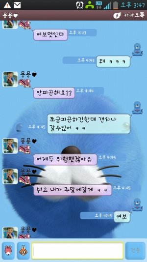 묭묭이에게서 문자가 도착함 ㅋㅋ