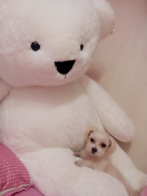 대왕만한 곰돌이 인형 다리사이에 쏙 들어가서 휴식취하는중 ㅋㅋㅋㅋ