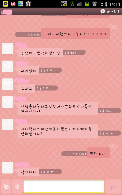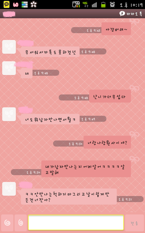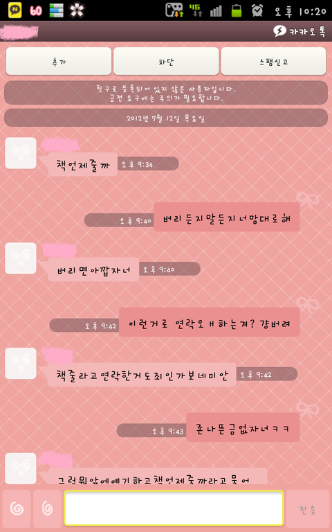 아..카톡이왓을때 어찌할바를몰라 친구가 시키는대로함..
