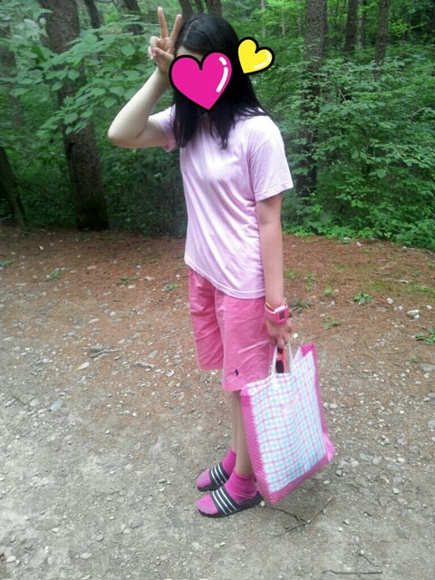가방도 빨강이고 머리삔도 안보이지만 있음 ㅋㅋ 빨강임