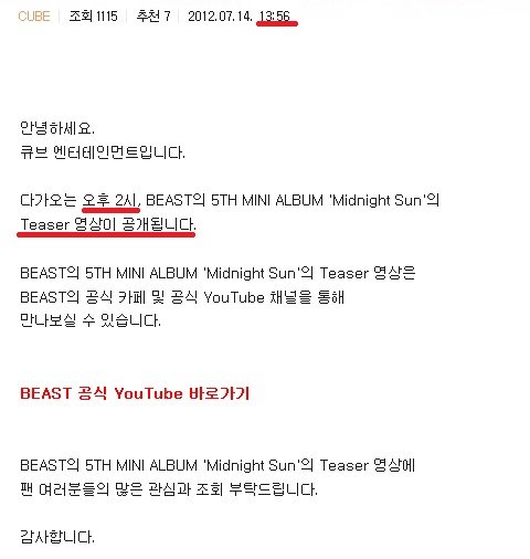 비스트 'Midnight Sun' 티저영상 공개