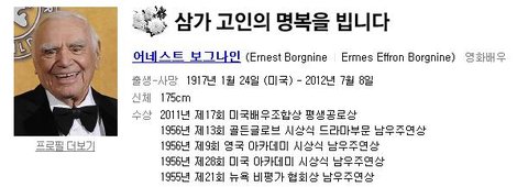 물론, 어렵사리 찾아온 사랑에 속앓이 하는 노총각 푸줏간 주인 역을 맡아 골든 글러브와 아카데미 주연남우상을 한꺼번에 거머쥔 '마티(Marty, 1995)'로 극단적인 이미지 변신을 보이며 사람들을 놀래키기도 했지만 말입니다. 참고로 1955년에 아카데미 남우주연상을 놓고 어네스트 보그나인과 경쟁한 배우는 제임스 캐그니(러브 미 올 러브 미), 제임스 딘(에덴의 동쪽 - 사후지명), 프랭크 사나트라(황금팔을 가진 사나이), 스펜선 트레이시(배드 데이 블랙 락)이었습니다.